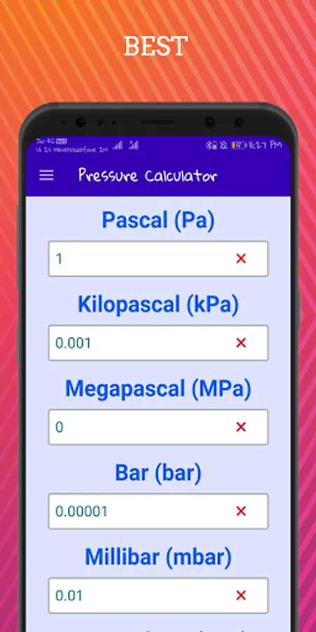 IV)The Pressure Converter App determines the value of pressure in precise decimal points that is no matter of round figuring is considered.