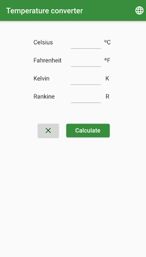 You simply have to fill in the field of the temperature that you already know and click on the calculate button to obtain all the other units of measurement at the same time. You will also have a clean button to be able to easily delete all the fields and do another conversion quickly.