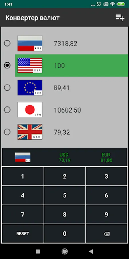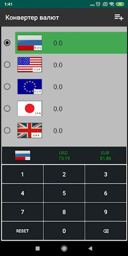 The application regularly updates exchange rates and performs automatic conversion at the rate of the Central Bank of Russia.