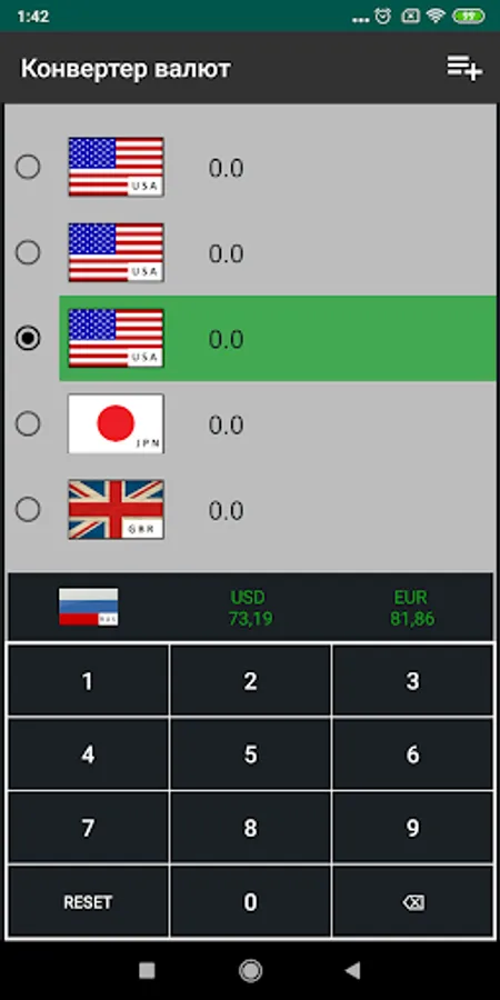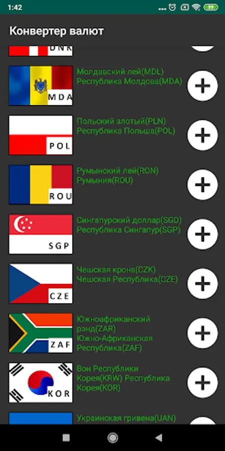 NOTE: You can add / remove a currency by clicking one of the five data on the currency screen and change it to the one you need by selecting from the list of all currencies (in the upper right part of the screen).
