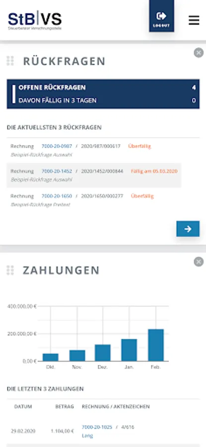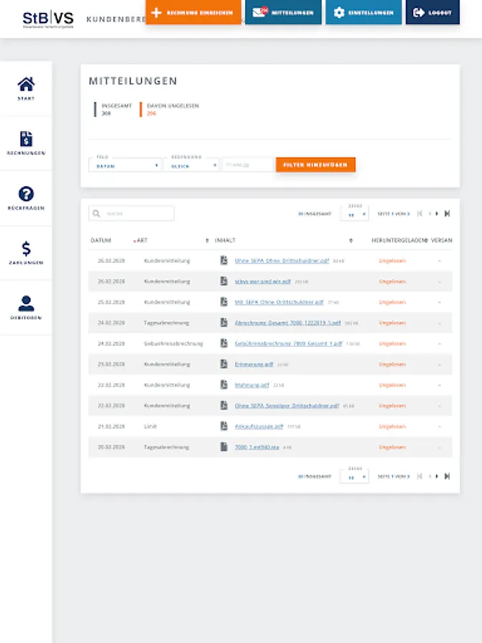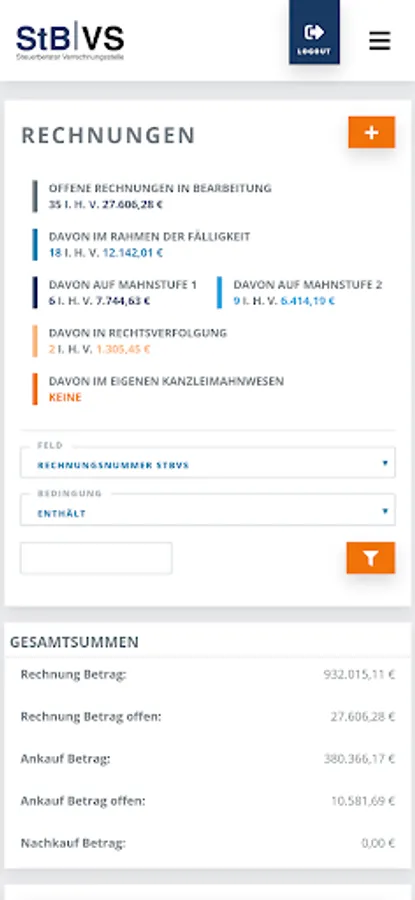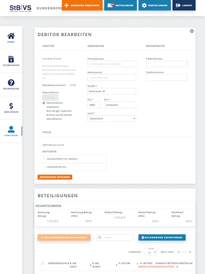 You can see which of your clients has already paid, whether an open claim is in the dunning process or has already been prosecuted. You control all work steps of the AnwVS - clearing house for lawyers via the lawyer cockpit and can actively intervene in the processes.