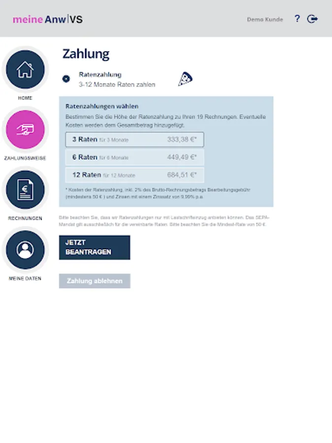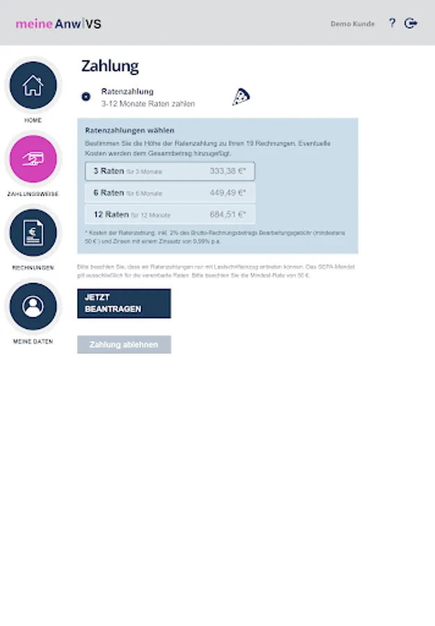 meine AnwVS offers you flexible payment options and an overview of all your open payments