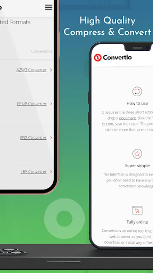 And that would be all! Files are converted by our powerful servers, and after conversion the result is downloaded to your device and files deleted from our servers. This also means the app won't burden your processor or RAM, nor it will drain your battery.