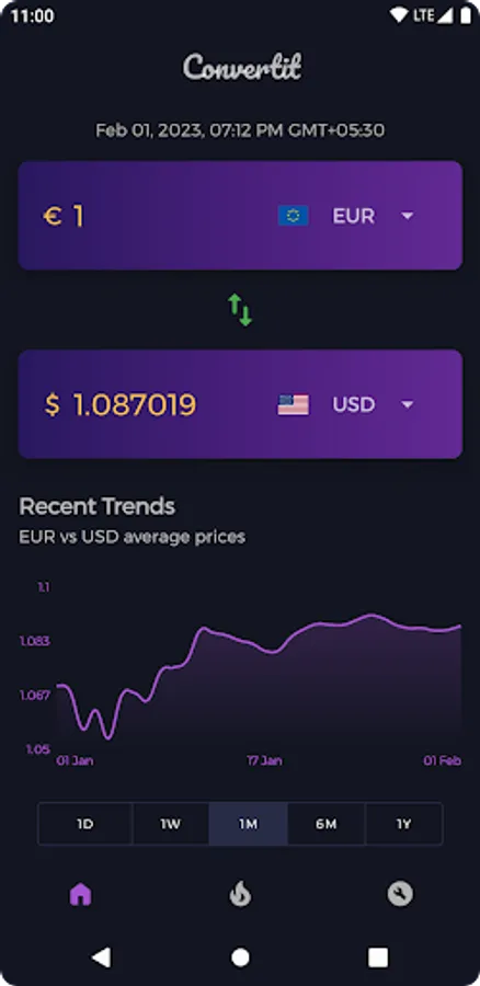 • Historical graph representation between currencies.