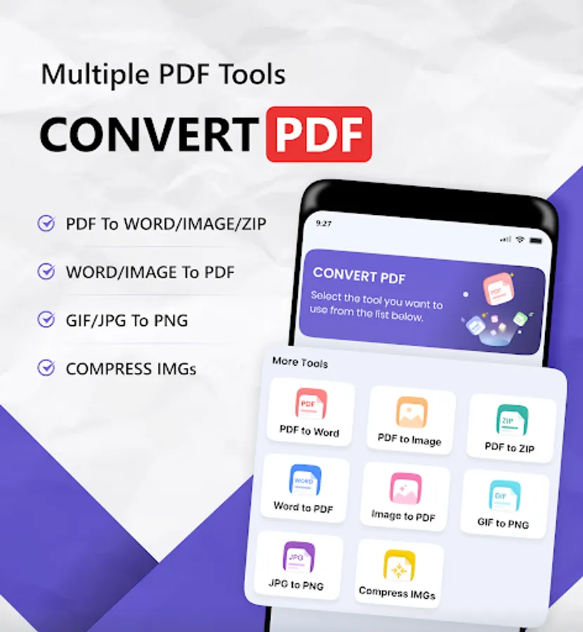 Use the Convert to PDF free app to convert PDF to Image, Zip, Word, and vice versa. It offers tools to compress images and convert JPG, PNG to PDF.