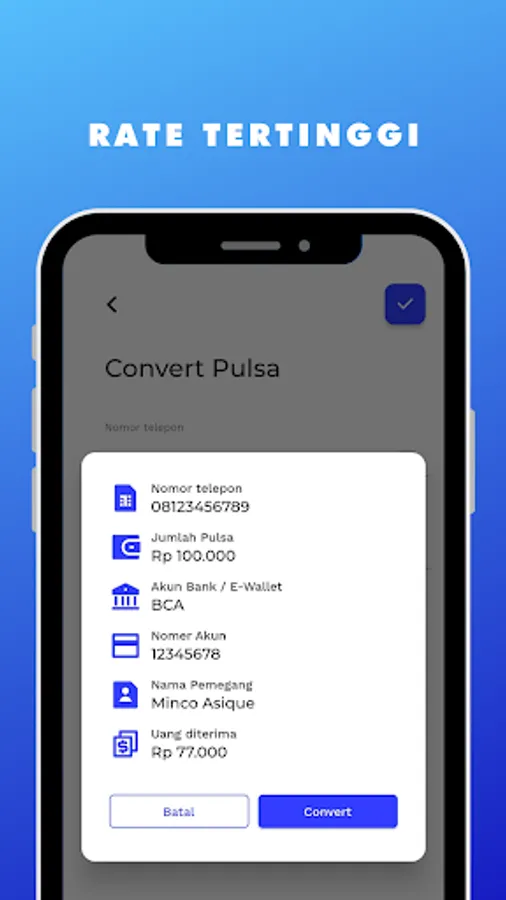 ConvertPulsay is an application to exchange your credit into money using the same operator credit transfer method to an ATM or digital money with the highest rate and of course it will be very helpful to cash out your credit.