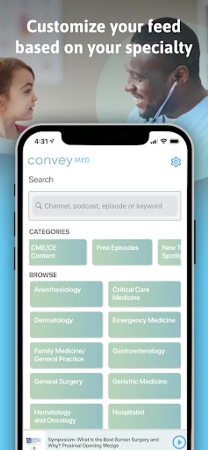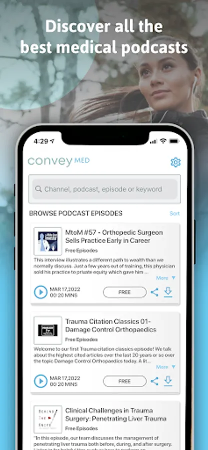 All the best medical podcasts live on ConveyMED! Convey streams hundreds of top-rated medical podcast channels, including thousands of FREE episodes, tailored to YOU based on your interests.