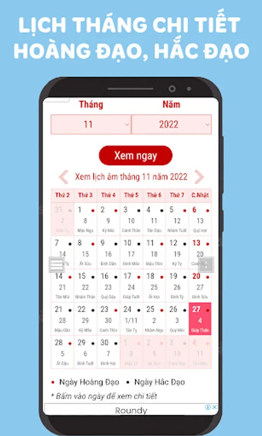 Lunar Calendar and Lifetime Horoscope: help you look up lunar and solar calendars quickly and conveniently. The app is free and requires an Internet connection to view the calendar.