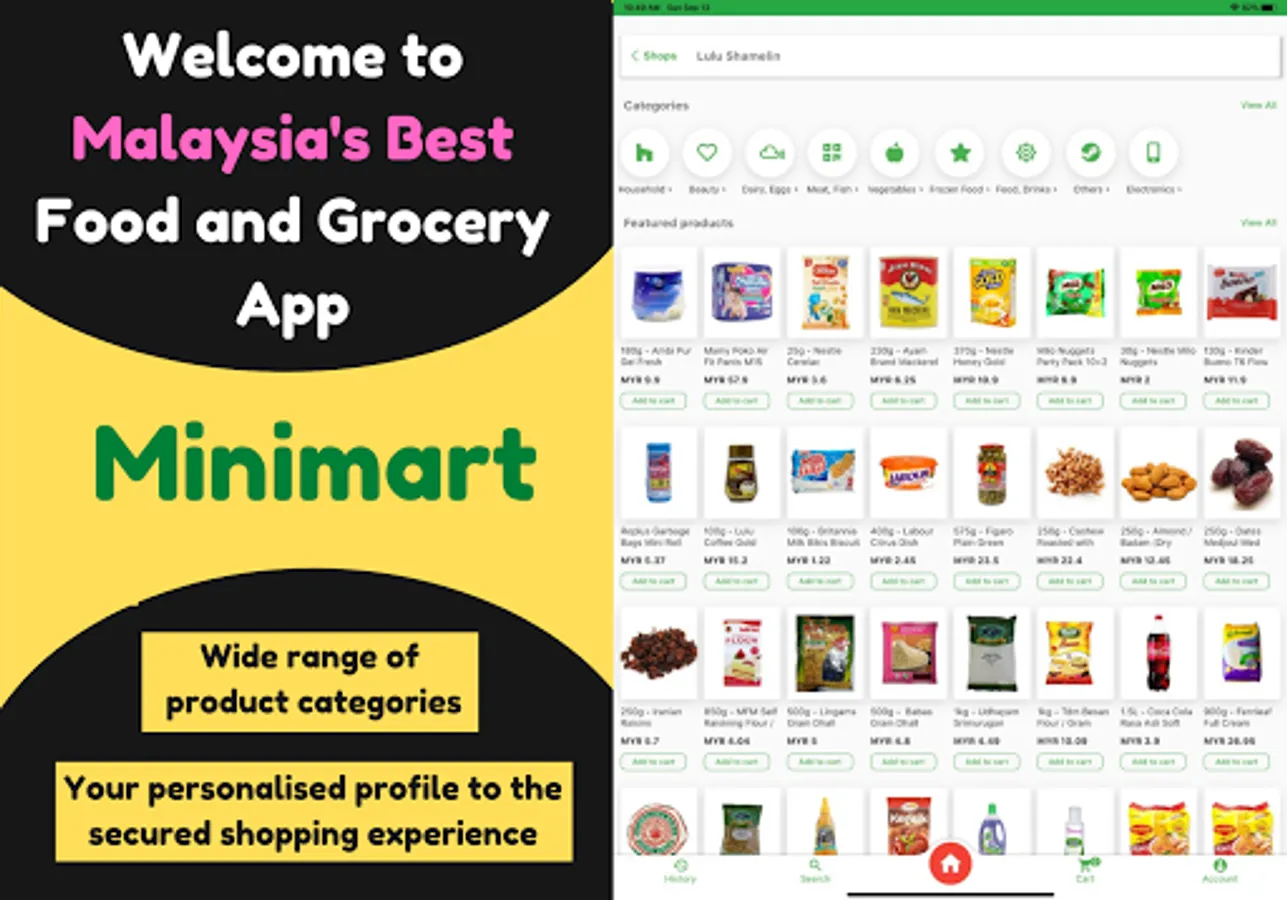 Fed up of tiring household shopping, long queues at the cashiers? Well Minimart is here to make shopping a whole new experience. You can search and shop from our full range of products and have your shopping delivered to your doorstep based on the time most convenient for you.