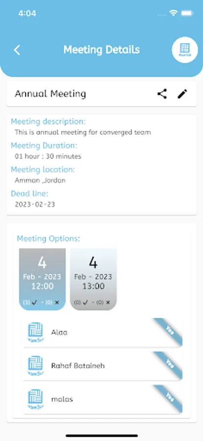 The Maw3idi app simplifies the scheduling of meetings. With its feature to create meetings with multiple dates and times, you can easily share the options with your friends to determine the best date and time for everyone. We aim to make this process effortless for you.
