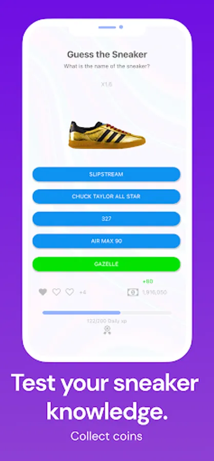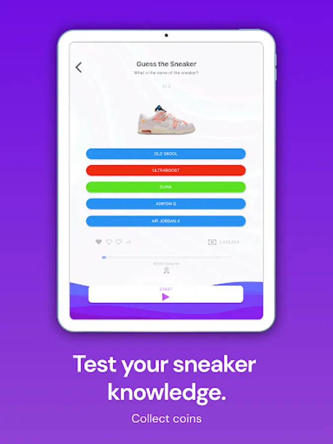 Earn coins by playing sneaker games, testing your sneaker knowledge, and completing challenges. Collect your favorite kicks or try to get them all - the choice is yours!