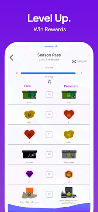 Collect specific sneakers to complete sneaker scratch cards and win coins, gems and more.