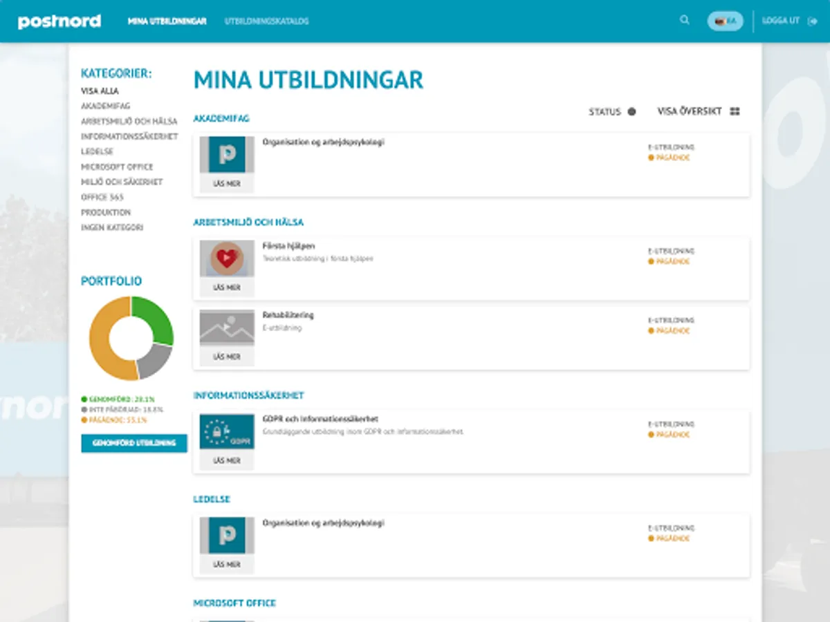 PostNord Learning is an online training tool designed to give PostNord employees and partners access to PostNord’ universe of e-Learning courses.