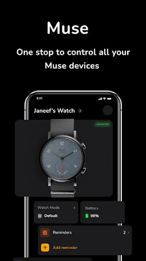 Muse Watch App is an application that syncs with your new Muse watch via bluetooth so you can get notifications, track your activity or even sleep, control your music, and more on your wrist, throughout your day. Set your activity goal on Muse Watch App and track the progress on your smartwatch. Download and start using the app with your Muse Watch to get a detailed report on your active lifestyle.