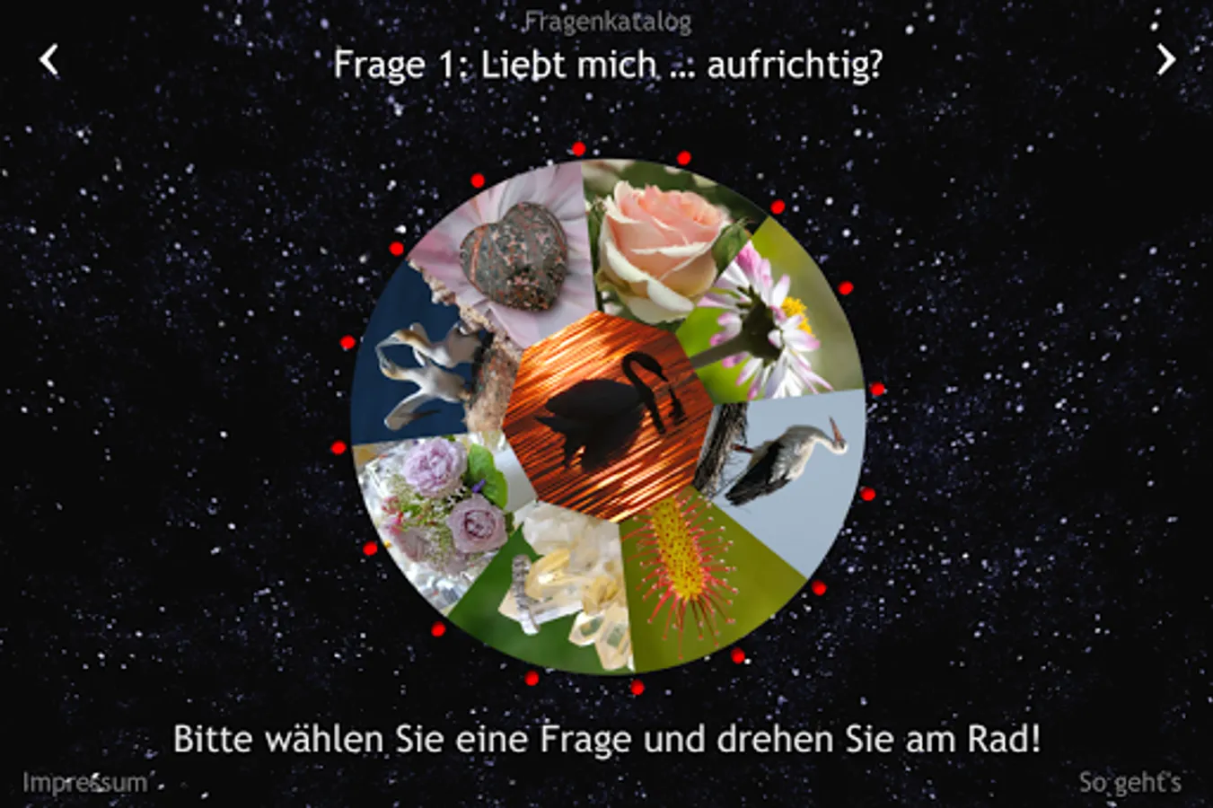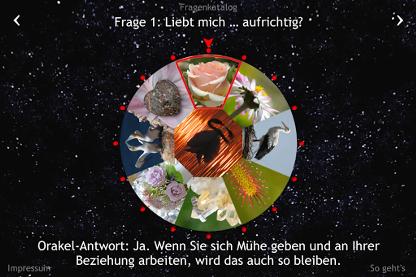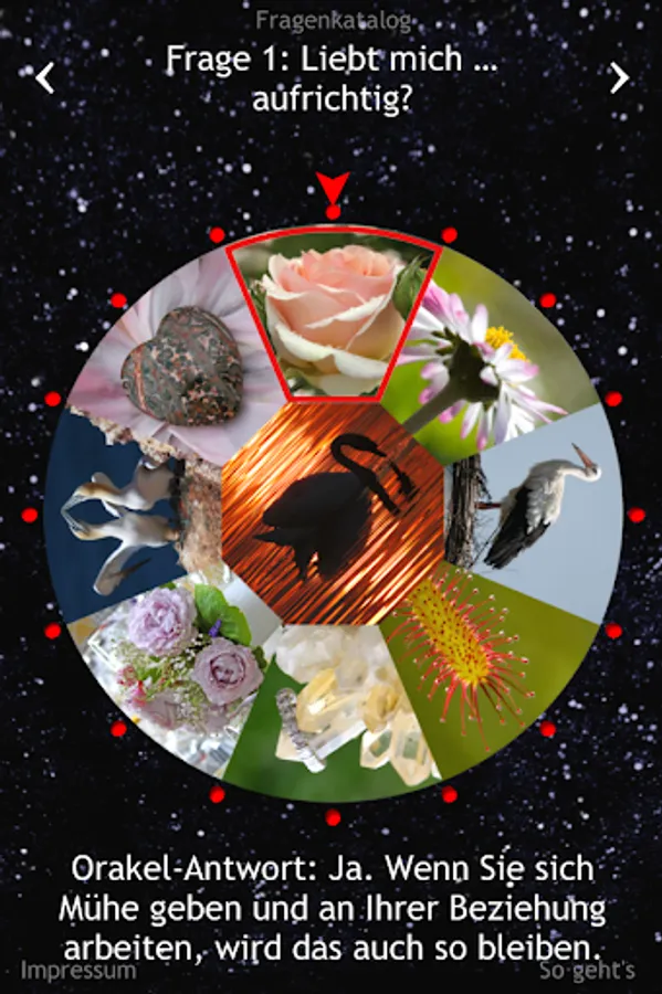 Loves he / she love me? How do I find my soul mate / in? Will I have children? Should I be his / her lover / r? Turn the oracle-wheel love. The Love Oracle provides answers to 41 key questions.
