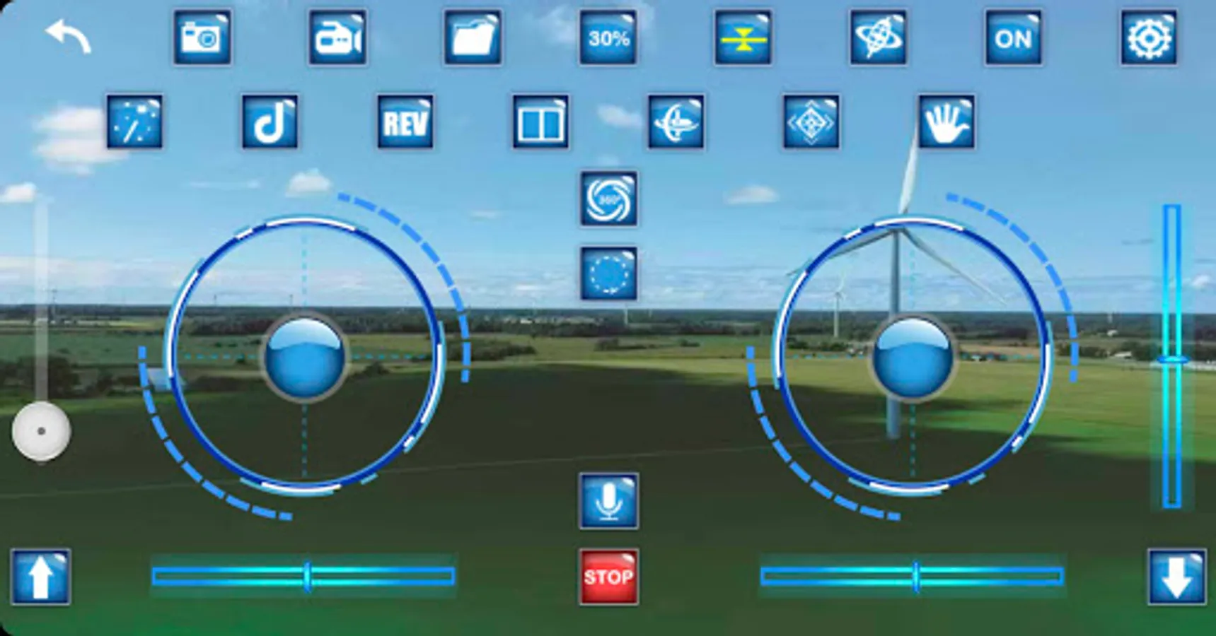 This APP uses wireless WIFI image transmission technology to control the flight of the quadcopter. After connecting to WIFI, you can open the APP to display the real-time streaming screen of the aircraft camera and control the aircraft to fly. You can take pictures, videos, and view photos and videos.