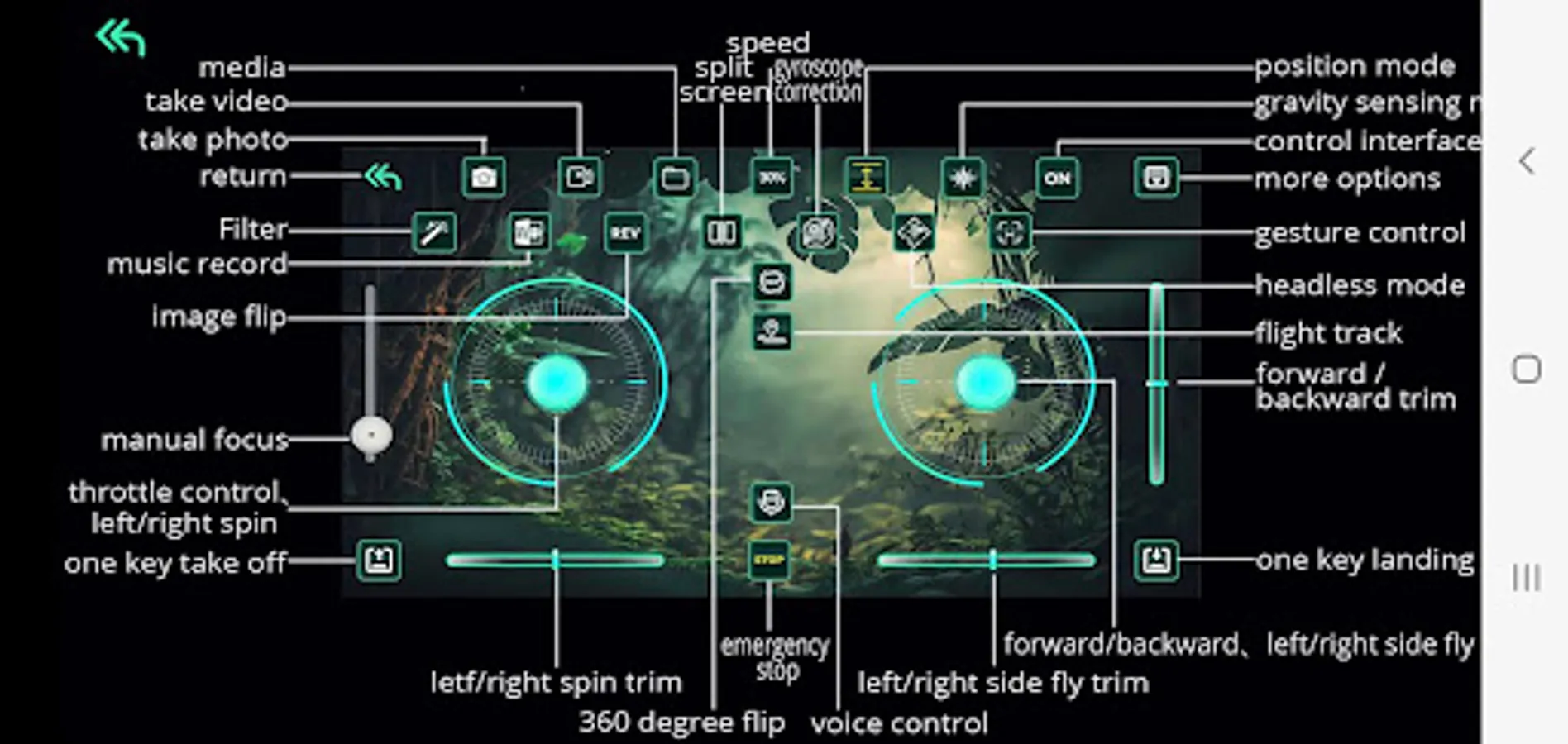 This app controls the flight of a four-axis aircraft through wireless WIFI image transmission technology.