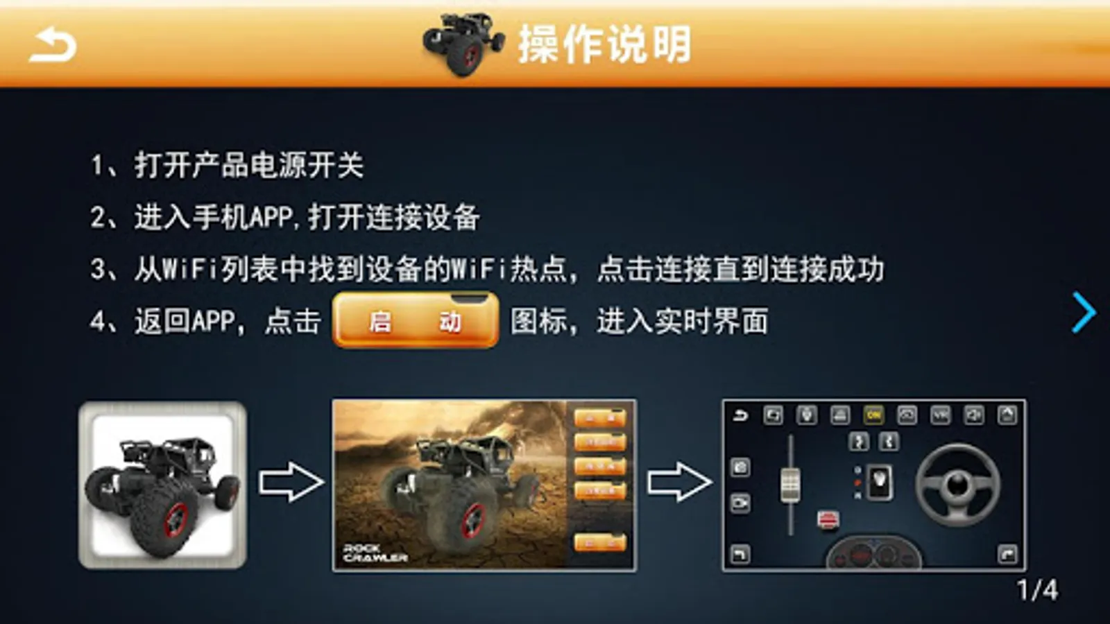 This app controls the climbing car through wireless WIFI image transmission technology.