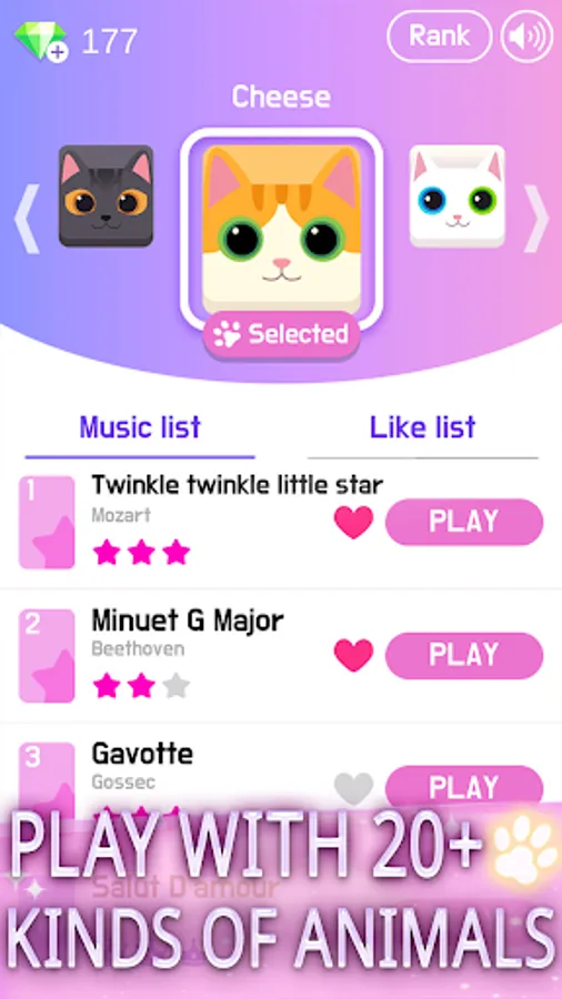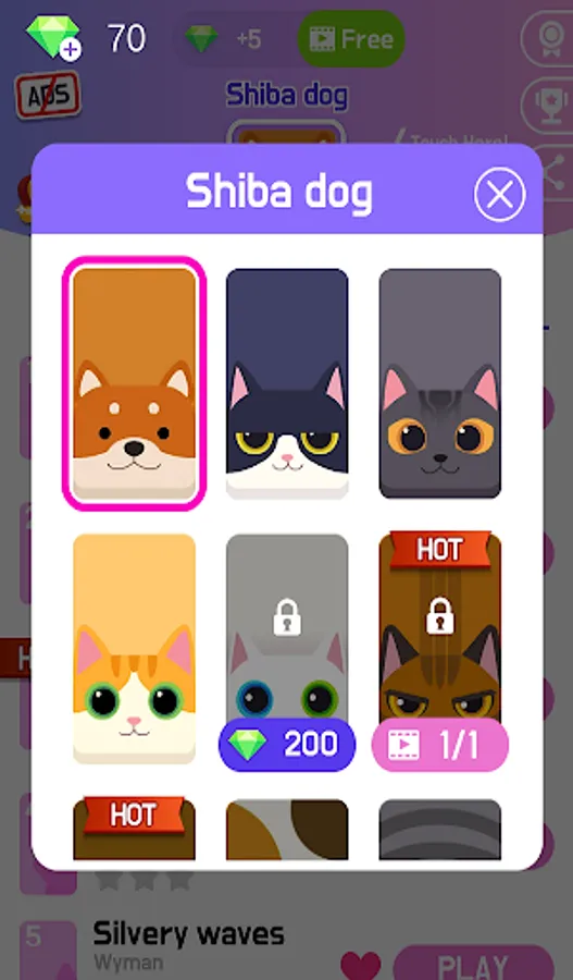 Bored of the standard piano cat? Choose your favorite furry friend to feature on your magic tile piano-- tabby cat, grumpy cat, nyan cat, shiba inu, golden retriever, husky, doge, you name it!