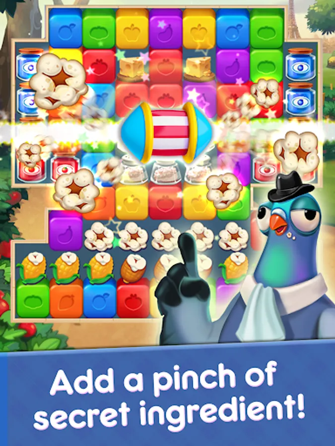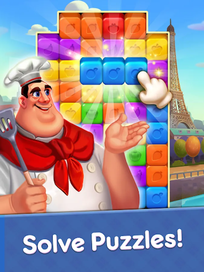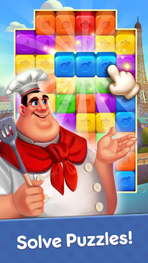 Chef Josh has a dream, and that dream is to become the one. But the only way to claim such an amazing title is by becoming the very best cooking collapse puzzle solving chef out there! It's not enough to be cooking average food. The food, like the chef's collapse puzzle skills, needs to be the best! So together with his pet cat Sam and gourmet pigeon Pesto, Josh is traveling through the streets of Paris in search of the best recipes and fresh and new cooking ingredients. But he can't do it all by himself! He needs your help to solve a variety of cooking-themed puzzles, blast away and collapse the food blocks, and in the end become the real Blaster Chef.