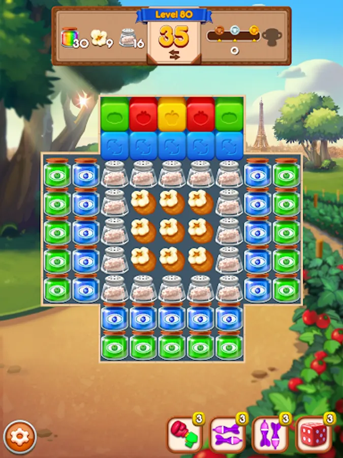 1️⃣ Find two or more of the same colored matching ingredients and tap to blast them!