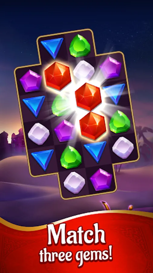 Play magical match 3 puzzles to retrieve gems, jewels and of course the magic golden lamp and have your biggest wishes come true! Embark on an adventure you will never forget in search of genies & gems, jewels & gold, fun & entertainment!