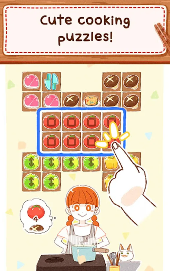 ◦ Simple and fun match-2 puzzle game play overflowing with character and tasty recipes!