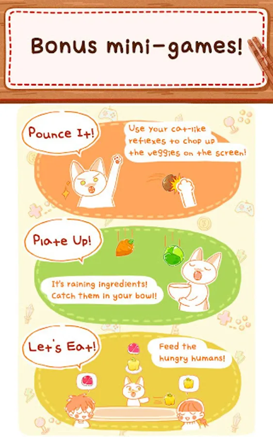 ◦ Lots of unique ingredients and cooking tools to play with, making each level a completely new experience.