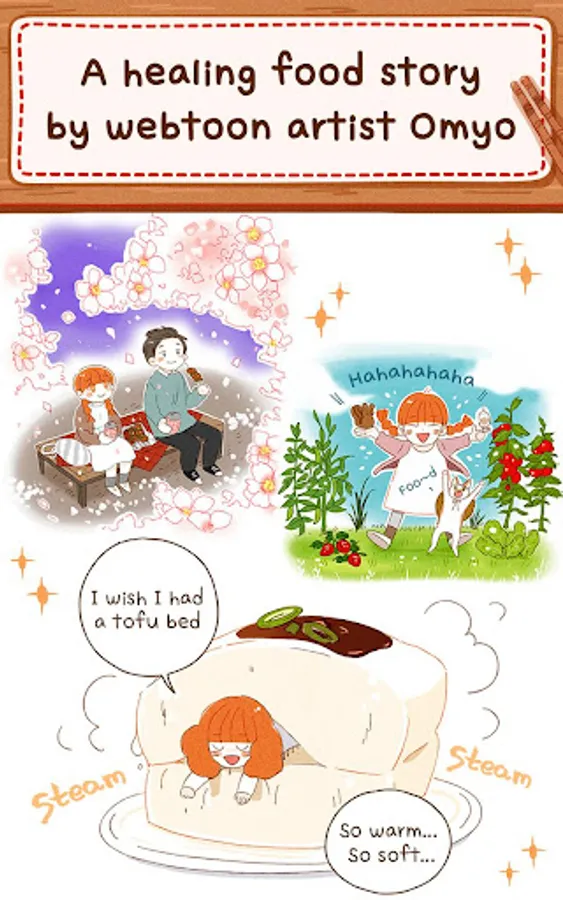 ◦ Mouth-watering, hand-drawn illustrations of all your favorite Korean food like kimchi stew, lettuce wraps, crab croquette, and handmade noodles - straight from the manga!