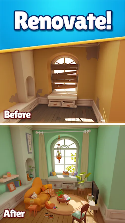 Join Colin and Nacho on this exciting journey of creativity and design choices. Renovate living rooms, throw parties, decorate libraries, and more! Whether you're a puzzle aficionado or an interior design enthusiast, there's something for everyone in this match-3 puzzle game. You will not only have fun solving puzzles, but you will also learn a thing or two about interior design.