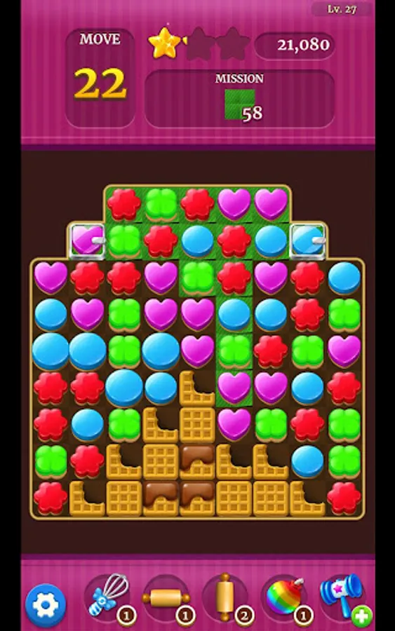 Using classic match 3 games rules makes this puzzle game simple to just pick up and play whenever you want. You'll hear the satisfying crunch of the cookie under your finger when you crush them, and can enjoy trying lots of different strategies in the fun and cute levels full of candy and cake.