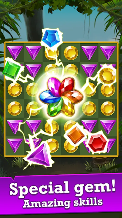 💎 Swipe, match, and combine more jewels to crush and blast gems for wild jungle treasures!