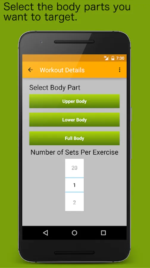 - SELECT BODY PART: For weight lifting workouts, select among upper body, lower body and full body workouts.