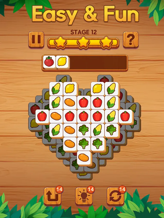 The game is easy to play: Match 3 identical tiles to solve the puzzle games!
