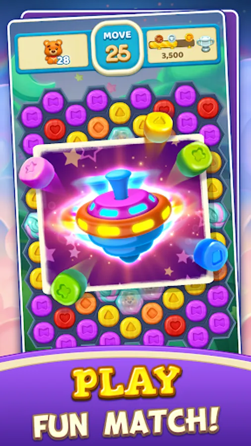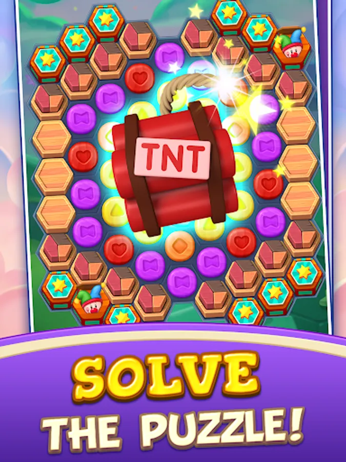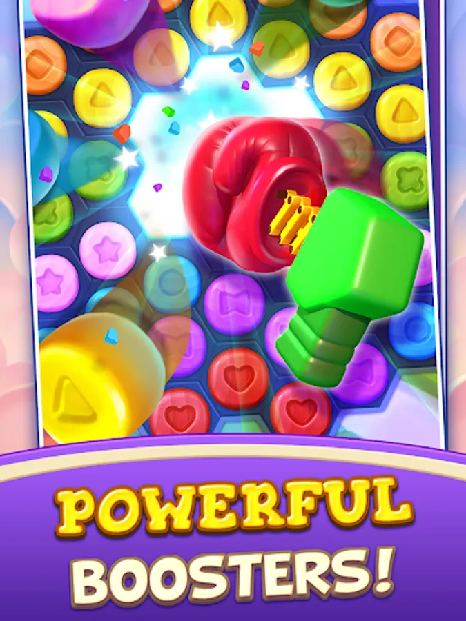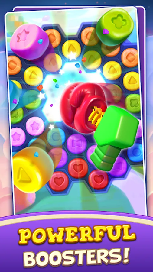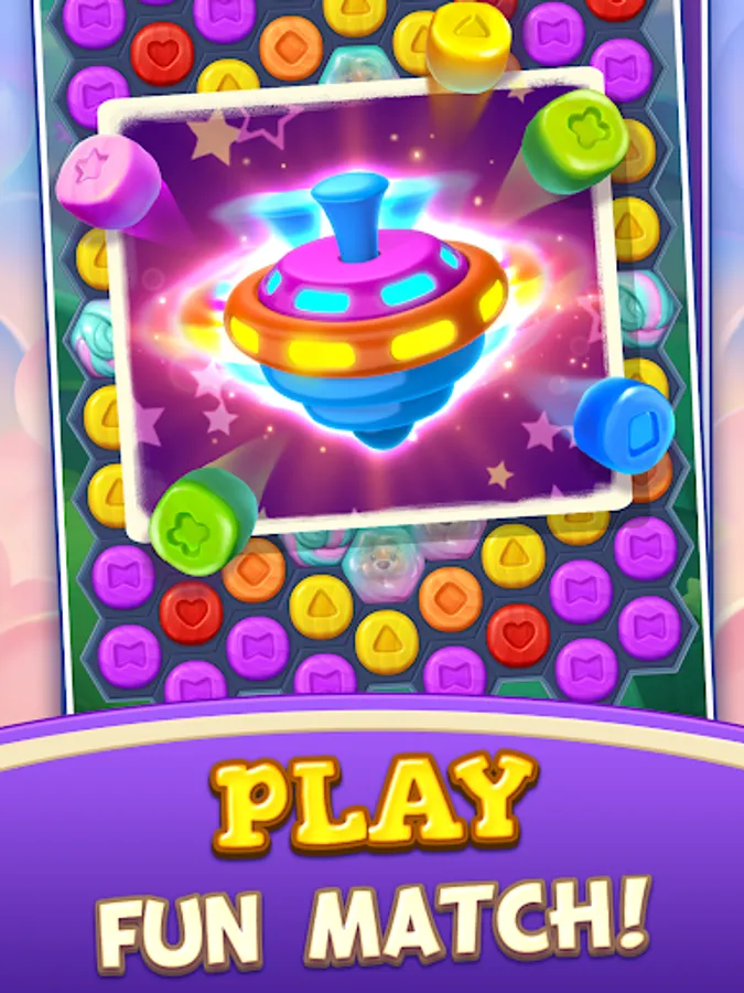 Try TOY POP ADVENTURE, the SIX DIRECTIONS Match 3 Puzzle game with bee hive shaped hexa puzzle blocks!