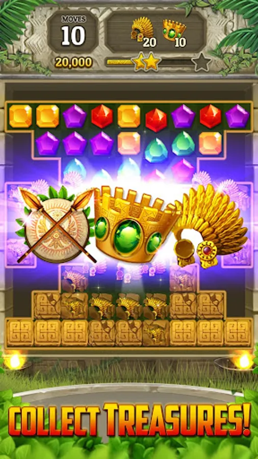 Go on an expedition deep into the jungle and find the lost treasure of the jungle. The new match 3 puzzle games in this ancient temple are hard to master, easy to learn, but above all fun to play. Enjoy a free spin with free items every day you play and blast your way through endless fun match 3 puzzle games!