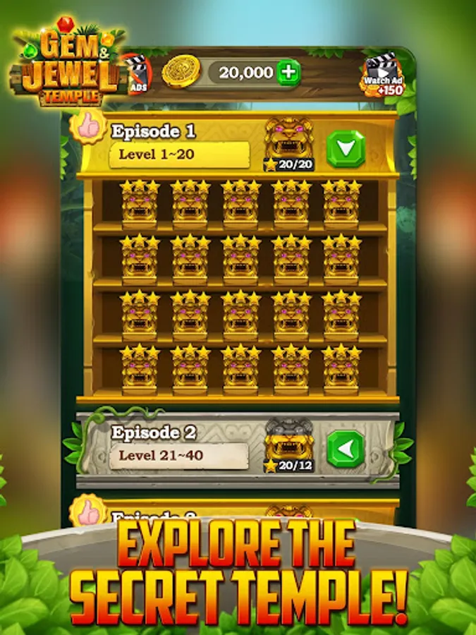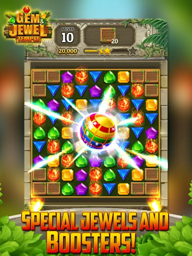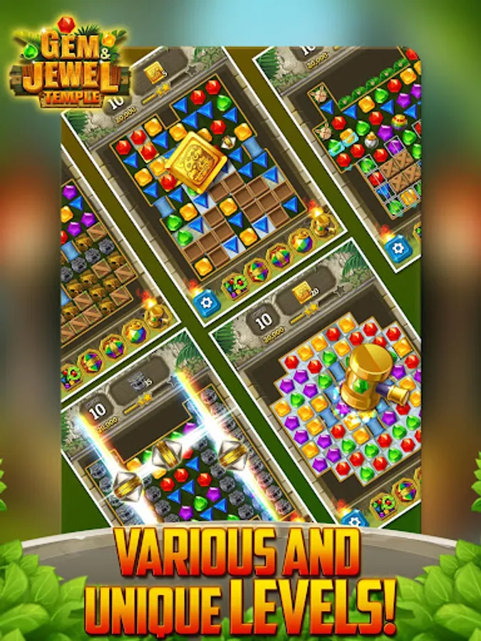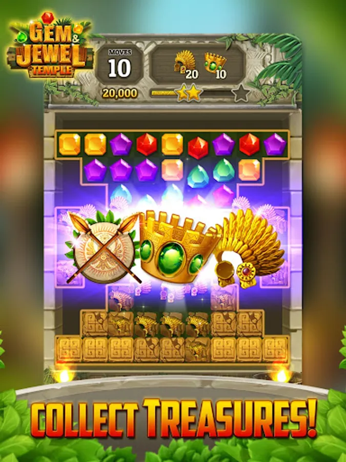 Gem & Jewel Temple is a classic match 3 puzzle game with exciting new block blast puzzles. Quest into the Gem & Jewel Temple hidden deep inside the jungle and discover the treasure and riches hidden within. Match, crush, and blast gems and jewels in fun and clever new matching games and puzzles to collect stars and explore the temple.
