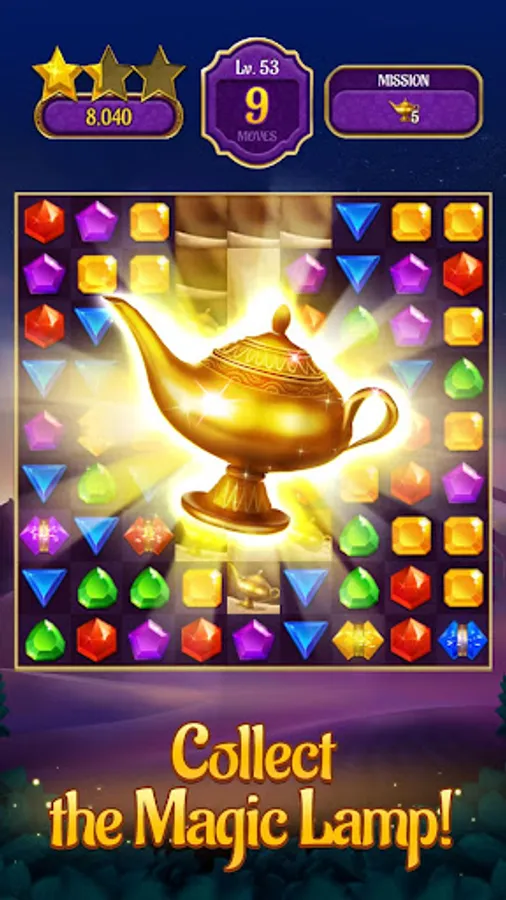 Blast into the world of 1001 Arabian Nights and join Aladdin on his puzzle quest to find the genie's magic lamp. Solve fun and exciting puzzles! Swap, match, and pop gems and jewels to get stars and make your wish come true!
