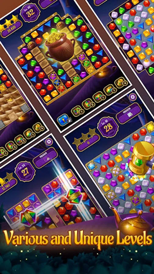 Jewels & Genies is filled with thousands of fun and challenging jewel puzzles! Match gems and crush jewels to clear levels and complete Aladdin quest! Jewels & Genies: Aladdin Quest Match 3 Games are free to play!