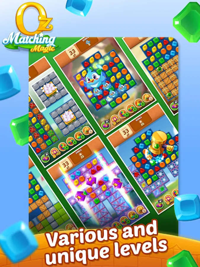 Step into the fantastical world of the wizard and enjoy match 3 puzzle games that will challenge and excite you. Follow down the yellow brick road, save cute little bluebirds, help the Munchkin village, and meet lots of interesting new friends!