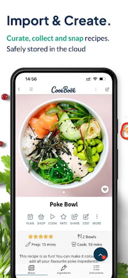 • Import recipes from websites, Instagram, TikTok, Facebook, Pinterest and more