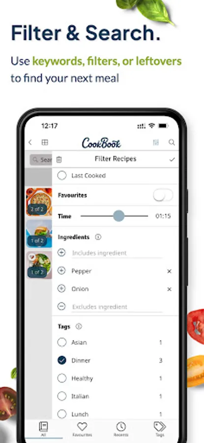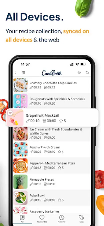 • Sync recipes across Android phones, tablets, and the CookBook Web App