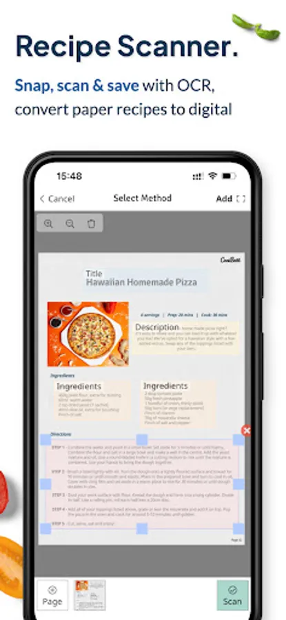 • Scan photos of cookbooks or handwritten cards with the AI Recipe Scanner