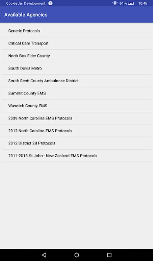 EMS Guidebook allows the user to view the medical protocols of specific EMS agencies. This guidebook is meant to be a replacement of the traditional flip book field guides that EMTs and Paramedics carry for reference on emergency calls.