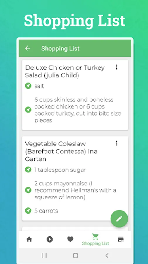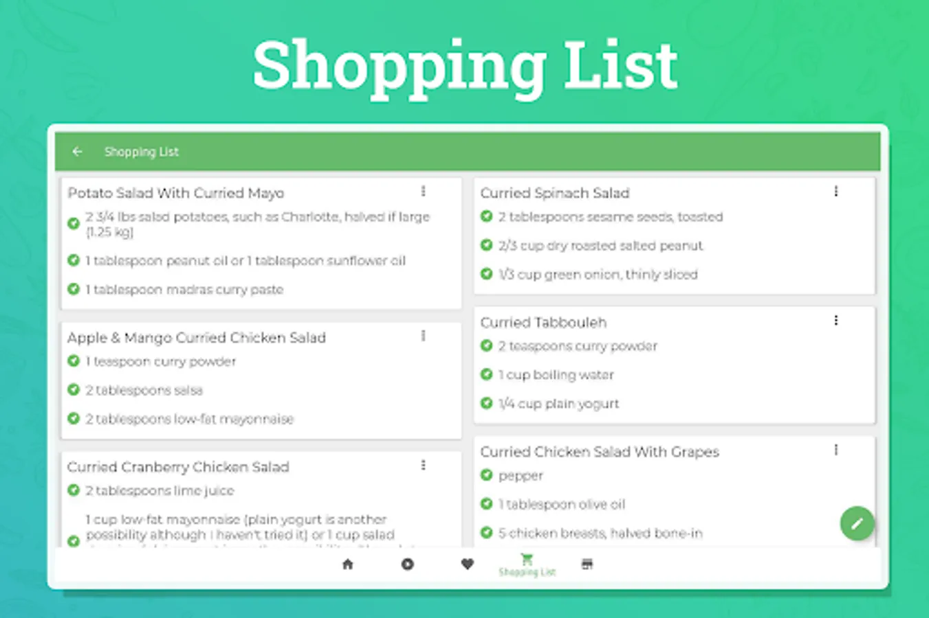 Salad recipes app let you manage all your favorite recipes and shopping list offline.