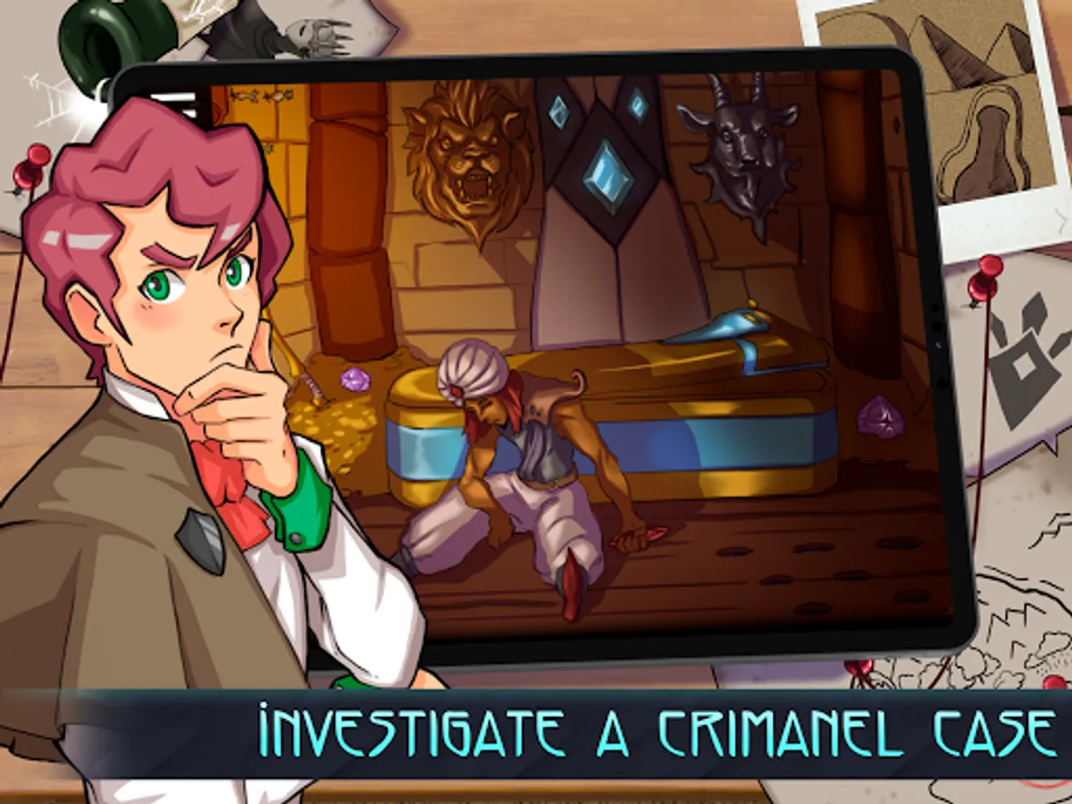 Investigate criminal cases. Pick up, find the clues, and solve the riddles at the scene of the crime
