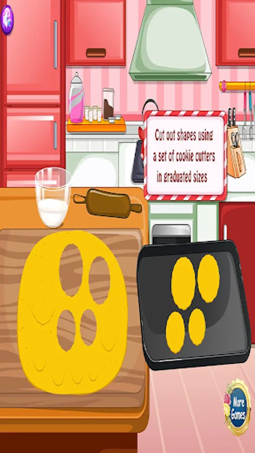 The next step in the cake-making cooking games is to place the mold on the dough to obtain the exact amount of the number of cakes to be obtained. Then, you place the small cakes on a plate that can accommodate these cakes.