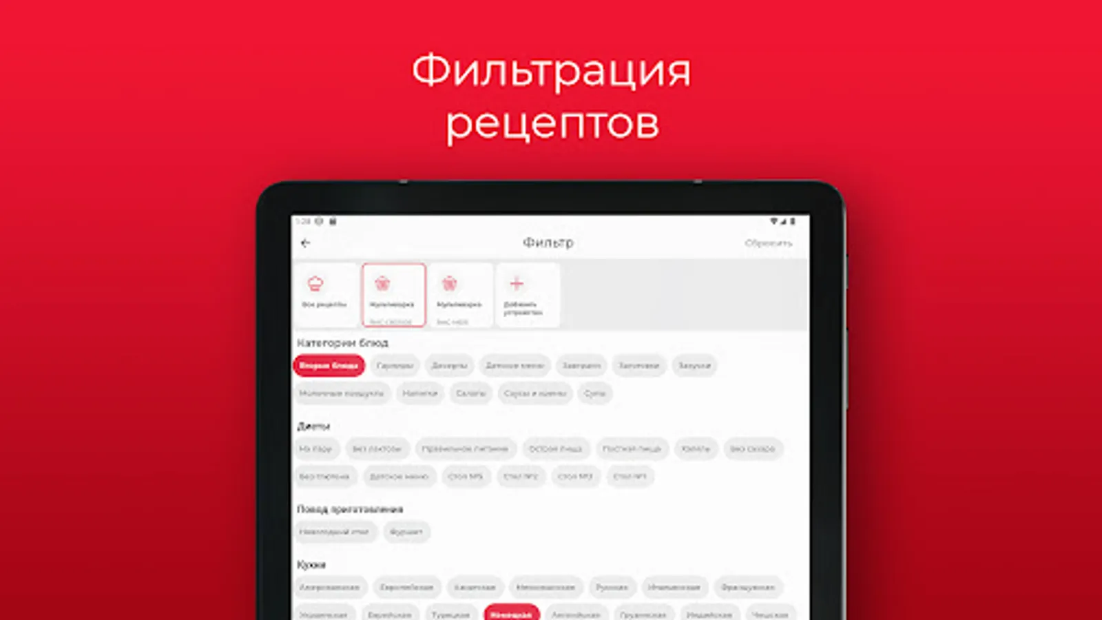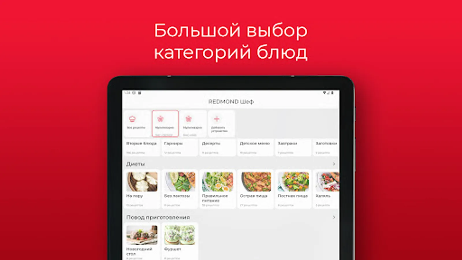 Cooking app with a rich collection of recipes from REDMOND. Hundreds of traditional and exotic dishes from all over the world. The list is regularly updated with new ideas. For each recipe - a detailed description of the composition and calorie content.