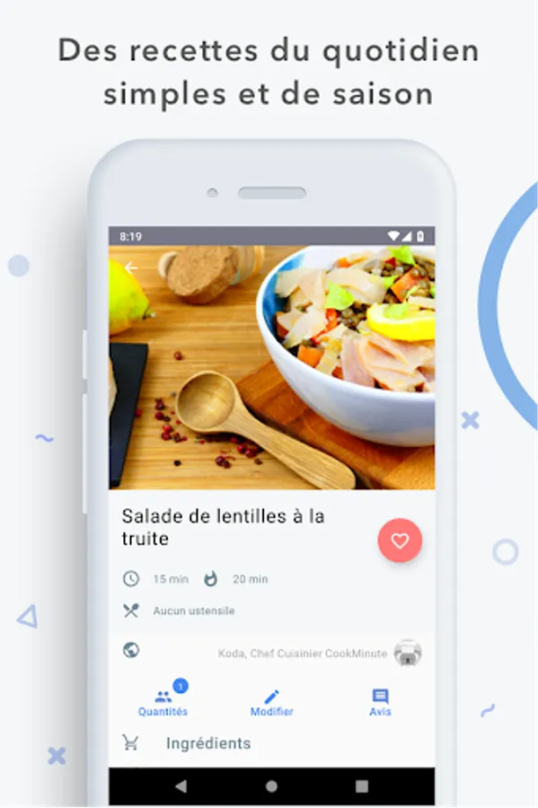 Our mission is to help you eat better on a daily basis , with short, seasonal recipes, as simply as possible. If you have ideas to improve the service (or even simple recipe ideas to cook!), Do not hesitate to tell us via private chat.