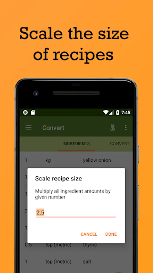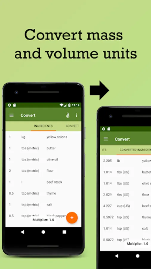 Save your favourite recipes to the app and organize them into categories. Listing ingredients in your recipes allows you to instantly convert them when needed, while adding instructions and notes makes it possible to save your ideas for later. You can also back up the app’s data to Google Drive, where it remains safe even if you lose or replace your device.